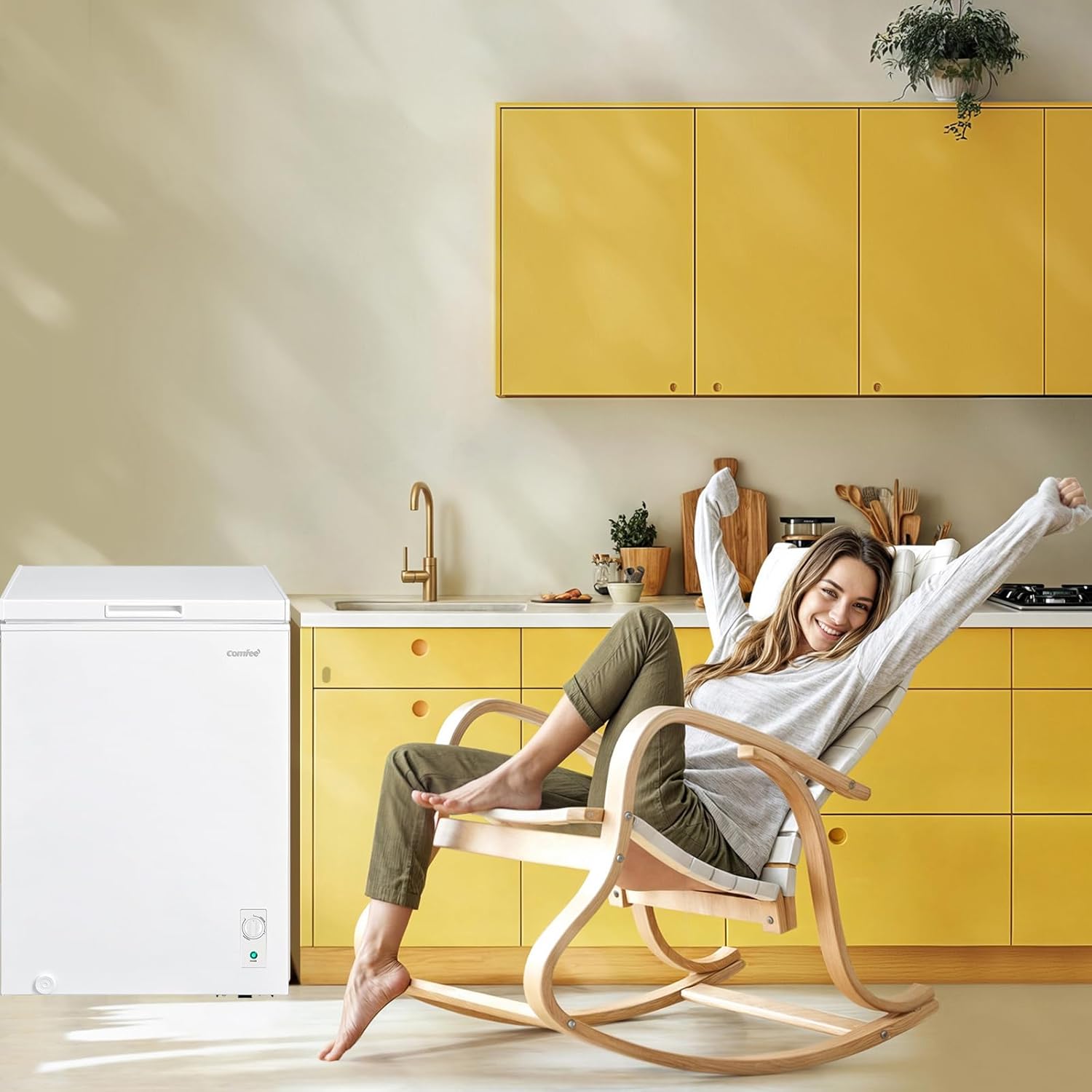 Scopri COMFEE’ RCC146WH2EU(E) 143L Congelatore a pozzetto indipendente: spazio extra e congelamento efficiente per conservare più a lungo i tuoi alimenti con la massima praticità